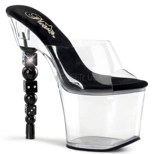 7 Inch Rhinestone Embellished Stacked Dice Heel, 3 1/4 Inch Platform Slide , Slide